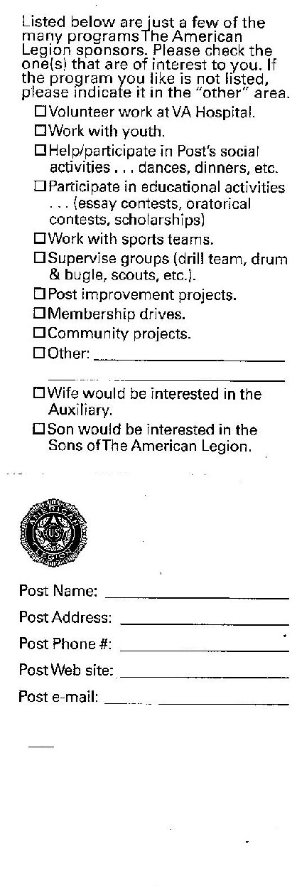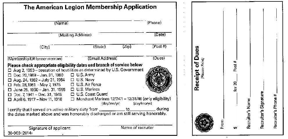 Please print and complete the appropriate application below. Send the American Legion applications to